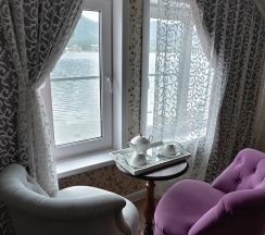 "Прованс" - это просто сказочный домик! При первом впечатлении вызвал неописуемый восторг: панорамные окна с видом на озеро, статуэточки, диванчик, столики, лампы, игрушечки. Миленько, но не очень практично. Вчетвером тесновато. Скрипит всё и везде. Стол в кухне ждёт ремонта, перемещать его опасно. Перемещать пришлось, чтобы раздвинуть диван. В общем и целом понравилось. В некоторых турагентствах предоставляют скидки гостям отеля. Администратор перед заездом скидывает в вотсап все нужные контакты, что очень удобно. Ради интереса промониторили цены на экскурсии в других компаниях, цена везде примерно одинаковая но скидок уже не предоставляют.