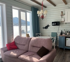 Останавливались семьёй с детьми в доме "Америка". Домик очень чистый, всё продумано до мелочей. Всё красиво и уютно обставлено, много посуды, разных нужных вещей для максимального комфорта. Вид просто потрясающий! На территории базы имеется парковка на несколько автомобилей, есть площадка для детей, общая зона отдыха. Вообще, везде чувствуется вложенная душа и любовь) А какое джакузи - это же просто рай после насыщенного дня!😁 В общем, спасибо огромное!) Надеюсь мы ещё вернёмся и снова насладимся этими потрясающими видами и тёплым отдыхом😊
