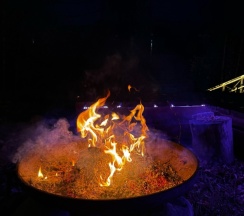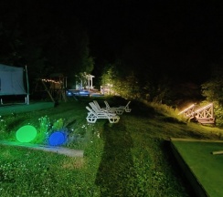 Есть сапы,есть ванна с подогревом и пузырьками на улице. Беседка место для костра.