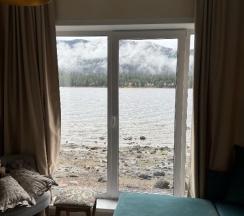 Дополню отзыв от зимнего путешествия на Телецкое озеро с 3 по 7 января 2025. Снова останавливались в домике Модерн. В домике тепло (я переживала, что можем замёрзнуть), все очень комфортно. Камин и новогодний декор +100 к уюту. Погода была отличная, солнце каждый день! Покатались на горных лыжах, снегоходах, сходили пешком на Третью речку и смотровую площадку, посидели в ресторане "Телецкий чай" на смотровой площадке, очень приятное место! Привезли из НСК свои коньки и катались каждый вечер на катке возле Ару кель в 5 минутах от О&К. Новый год начался отлично!