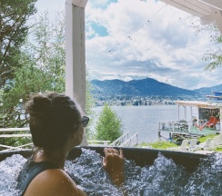 Останавливались на 2 ночи в домике Модерн. Прекрасная база, все продумано до мелочей и с точки зрения быта, с тонким дизайнерским вкусом! В домике есть все от посуды до сушки обуви, зонтов на случай дождливой погоды, полы с подогревом, в нашем домике был камин. Представляю какой кайф здесь зимой! Территория небольшая, но очень функциональная, освещение везде, большая общая веранда с видом на озеро, лавочки, мангальная зона, обустроен спуск к озеру, которые вечером подсвечен.Гамак, батут, качели, есть аренда сап-бордов. С удовольствием покатались по озеру. А потом пошли греться в джакузи, которое предусмотрено для каждого домика! Просто чудесное завершение вечера! Спасибо собственникам базы за такое чудесное место, в каждой детали чувствуется любовь и уважение к гостям! Администратор Юлия очень доброжелательная, оперативно отвечала на все вопросы. Однозначно рекомендую это замечательное место! Обязательно приедем сюда зимой!