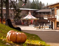 На территории есть все для полноценного отдыха: лыжня, кинотеатр, мини-зоопарк, спа, рестораны, боулинг, веревочный парк, музей ретро автомобилей, прогулочные пешие маршруты