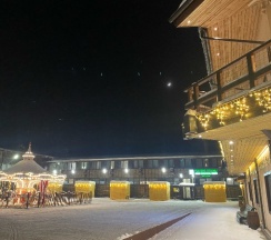 Отдыхали в феврале) Комплекс отелей состоит из нескольких корпусов, мы жили в Парк-отеле. Нам понравилось)) Здесь отдыхали во всех смыслах) Номер был классный, типа двухкомнатной студии с тремя большими окнами с видом на лыжную трассу, всю в огнях ✨) В номере был кухонный гарнитур, я выбрала такой специально, тк у нас не входили обеды, только завтраки и ужины, а ребёнкина и себя надо кормить и не хотелось ходить по кафешкам, хотя этого здесь сполна. В номере были даже интерактивные очки для игр (за доп плату конечно). Из трех аквазон мне лично понравился бассейн с выплывом на улицу. Я насладилась видом из бассейна на луну на темном вечернем небе🥰) Термы тоже ничего, но хотелось бы побольше разных саун) Третья аквазона - спортивный бассейн. Еще есть серфинг на искусственной волне) А какая здесь лыжня!!! Любители беговых лыж - вам сюда! Есть разные тарифы для отдыха, мы брали по акции «Снежный бум», считаю наиболее выгодным и удобным данный тариф, а так весь выбор - на сайте).