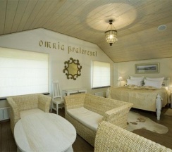 На третьем этаже расположен огромный (150 кв.м) президентский номер с просторным холлом, разделенным на несколько зон и 2-мя спальнями – хозяйской и гостевой.