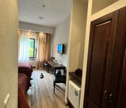 Снимали на ночь номер стандарт. Что могу отметить из минусов: отсутствие горячей воды, отсутствие фена, не по сезону тяжелые и теплые одеяла, номера телефонов для бронирования на ГИС нужно отредактировать (по указанным не дозвониться). Из плюсов гостиницы могу отметить: красивое местоположения, приветливый персонал (пошли на встречу и организовали нам завтрак в 7 утра, хотя они с 9ти).
