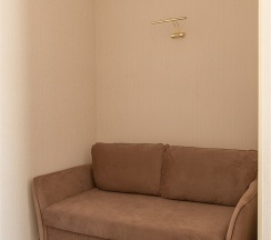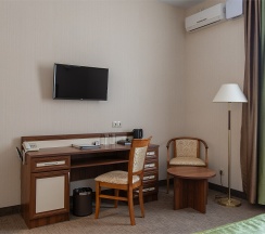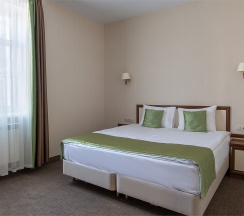 Однокомнатный номер с 1 двуспальной кроватью и мягкой мебелью, шкафом для одежды. Номера оснащены холодильником, чайным набором, телевизором. Совмещенный сан.узел с душевой кабинкой, феном. Вид из окон на город. Проживание с животными запрещено.