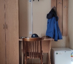 Жила в одноместном номере, все чисто, мусор выносят почти каждый день, есть большой шкаф, стол, свет у кровати, холодильник и телевизор (техникой не пользовалась, но на телике были часы, очень удобно сверять время, настенные часы просто висели для интерьера, не шли), порадовало наличие обувной ложки (мелочь, а приятно). Окна номера 8 выходят на сожженую заброшку, по-моему прикольно, очень тихо, в холле делали ремонт, но в мое отсутствие, рано утром и поздно вечером не шумели. На первом этаже есть кулер с горячей водой.