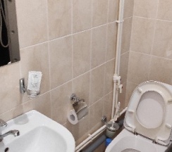 Старая душевая кабинка, иногда гудела, немного ржавая внутри, запах, но не критично, чистая, мыться можно. Это если уж совсем придираться.