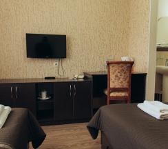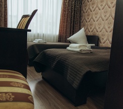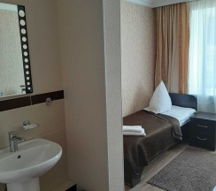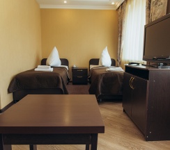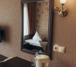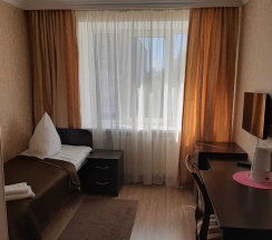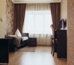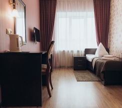 Одноместный улучшенный номер отличается от стандартного увеличенными размерами номера, кроватей и даже телевизора. В номере дополнительно стоит кресло.
