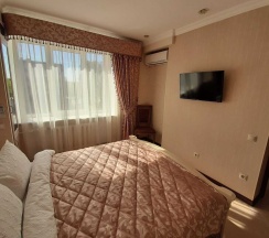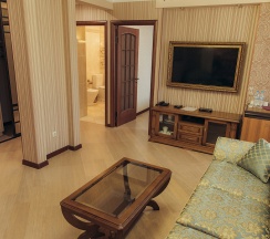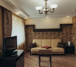 В номере две комнаты: гостиная и спальня. Просторная ванная комната с ванной, биде и душем. Современная дизайнерская мебель, индивидуальный подход к оформлению номера подчеркивают его неповторимость. Номер оборудован всем необходимым для комфортабельного отдыха. Кондиционер в каждой комнате.