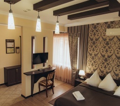 Уютные номера, окна которых выходят в тихий двор. Каждый номер Люкс единственный в своем роде: все номера отличаются интерьерными решениями, организацией пространства. Но, самое важное, что все номера Люкс наполнены уютом для Вашего комфортного отдыха.