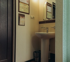Перед поездкой в Людиново выбирал гостиницу, читал противоречивые отзывы и был на распутье в своём выборе. Выбор этой гостиницы был определён расположением и наличием магазина прямо напротив. Забронировать через форму на сайте и электронную почту не удалось - форма не работает, а почту никто не читает. Решил позвонить, попал в момент, когда администратор обедает, - телефон взял охранник и попросил перезвонить. В итоге, чуть позже по звонку номер был забронирован. По приезде гостиница встретила фасадом с пластиковыми окнами, шикарным лобби с картинами, диванами. Регистрация прошла как и в других гостиницах, оплата наличными или кредитными картами. Сама гостиница занимает 2-4 этажи здания, лифта нет. Внутри всё отремонтировано и выглядит очень прилично. Учтите, что в гостинице есть и номера с удобствами на этаже. Впрочем, на сайте гостиницы всё описано. В номере был ЖК ТВ, три полотенца, мыло, пакетик с шампунем, тапочки, чайник, чашки, штопор, стаканы, минихолодильник, различные светильники, фен, электрофумигатор, может чего и забыл ещё. Wi-Fi работал нормально. Телеканалов полно всяческих, скучно не будет. У кровати было две розетки с обеих сторон. У меня номер был непрямоугольной формы, так часть мебели была изготовлена на заказ под такое помещение. В ванной слегка тесновато сидеть на унитазе, в остальном нормально. Из замечаний: 1) холодильник не имеет розетки рядом с собой, поэтому пришлось включать вместо настольной лампы; 2) при открывании дверей на этаж, курилку, другие номера входная дверь хлопала, несмотря на наличие уплотнителя, проблема решилась вставкой лопатки для обуви между полотном и косяком. При выезде необходимо сдать номер горничной, вызвать её можно по телефону или лично, после чего она забирает ключи и звонит администратору.