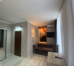 2-х спальная кровать, шкаф, стол, с/узел с душевой кабиной, тумбочки, холодильник, телевизор, кондиционер, WI-FI