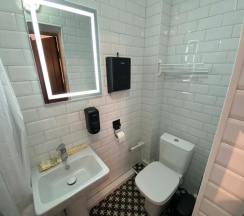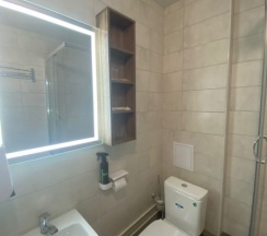 Понравилось: Чистый, современный санузел, набор косметики, комплект полотенец.