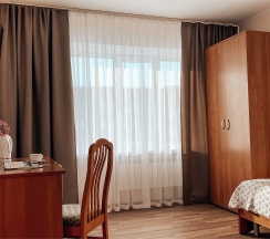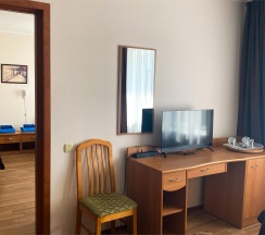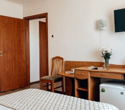Стандартный трехместный номер с тремя отдельными односпальными кроватями расположен на 4 и 5 этажах Отеля. Номер с собственным санузлом, укомплектованным гигиеническими средствами первой необходимости. Номер оснащен: телевизором с плоским экраном, холодильником, электрическим чайником, чайной посудой, феном.