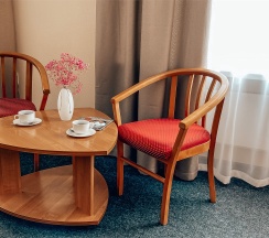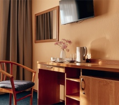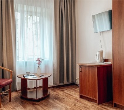 Стандартный двухместный номер с раздельными кроватями располагается на 4 и 5 этажах Отеля. Номер с собственным санузлом, укомплектованным гигиеническими средствами первой необходимости. Номер оснащен холодильником, телевизором с плоским экраном, электрическим чайником, чайной посудой, феном.