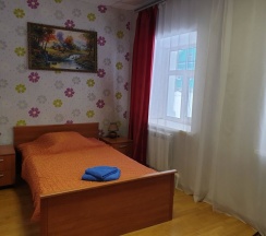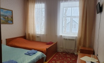 Гостиница в центральной части города. Перед входом есть небольшая парковка. На первом этаже холл и помещение кафе, где завтракали. На завтрак можно выбрать из нескольких вариантов блюд. Между этажами лестница. В разных частях на этаже по коридору тоже есть ступеньки. На первом этаже есть комната с электрочайником, стиральной машиной. В номерах мебель со следами долгой эксплуатации, но вполне приемлемого вида. На стенах картины и небольшой экран телевизора. Розеток достаточно. Вода в номере насыщенная сероводородом, вероятно из скважины. Слышимость между стенами к сожалению достаточно хорошая. На втором этаже есть выход на балкон.