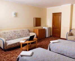 Понравилось: Отель удобно расположен на одной из центральных улиц, машину можно поставить на частной парковке отеля справа от центрального входа. Не смотря на поздний приезд (23:00) на ресепшн меня встретили. Оплатить номерной можно и картой, это удобно. Номер очень большой, даже слишком, но при этом не оснащён рабочей зоной и сейфом (он есть только в люксе). Кровать большая, достаточно удобная. Полотенца, фен - в наличии. Гель и шампунь - самые дешевые (в пакетиках). Номер очень чистый. Горячая вода из водонагревателя в ванной подаётся исправно. Понравился ресторан: отличный обед, да и завтрак неплох. Яичница, сыр, колбаска, вкусный свежесваренный кофе помогли проснуться. Не шведский стол, но жить можно. Персонал весьма приветлив, но городской телефон не берут, так что я не смог предупредить, что поздно приеду.