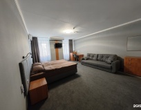 Не понравилось: Очень неграмотное освещение. Один выключатель!!! Верхний свет и "ночник" над кроватью включаются одновременно. Почитать перед сном книгу невозможно. Точечного освещения, лампы нет. Нет стульев! Одно громоздкое кресло. Нет ни чайника, ни чашек, не говоря уже о чае и кофе. В санузле громоздкая душевая кабина с высоченным порогом и грибком по углам. Запах неприятный.