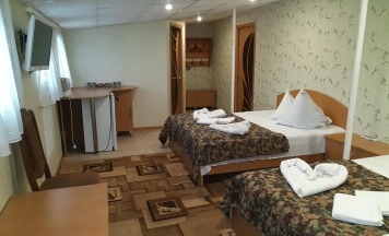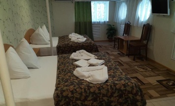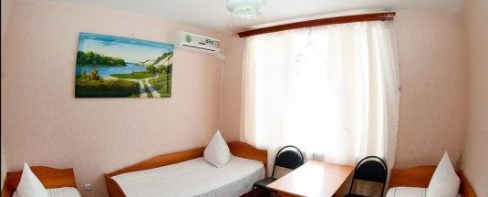 Номер с удобствами, рассчитанный на двух человек. Номер с двумя кроватями с ортопедическим матрасом, ЖК-телевизором, кондиционером, холодильником, большим платяным шкафом, комодом и тумбочками. Для всех гостей предусмотрено постельное белье, полотенца, ежедневная уборка в номере.