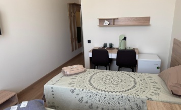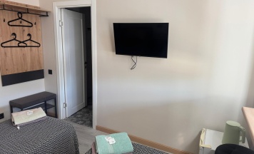 В номере телевизор(плоский),в коридоре поттер, холодильник,стиральная машинка. Приветливые,отзывчивые женщины администраторы,все подскажут.