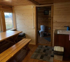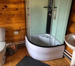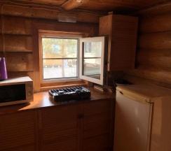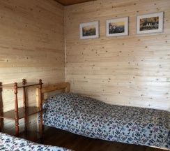 Гостевые коттеджи располагаются на первой линии, прямо у воды. 4 комфортабельных коттеджа со всеми удобствами, с видом на озеро. Вместимость каждого коттеджа 8-9 человек. Дома двухэтажные. Лестница расположена снаружи дома. Этажи не связаны между собой.
