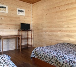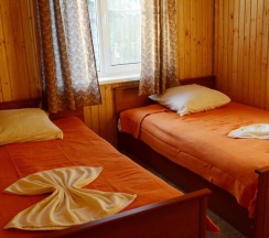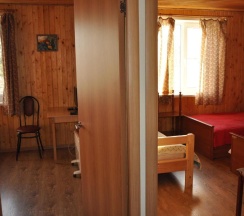 Для вас на территории 4 двухэтажных домика на берегу. На каждом этаже четырехместный двухкомнатный номер со всеми удобствами.