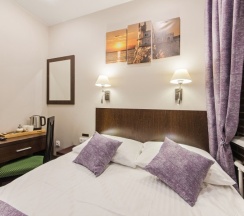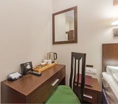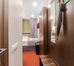 Уютный однокомнатный номер, в котором могут разместиться один или два человека. Номер площадью 11 кв.м., выполненный в спокойной цветовой гамме c мотивами дизайна Лофт, располагает к отдыху после долгих экскурсий, прогулок и развлечений в городе. В номере предусмотрена вся необходимая мебель: просторная двуспальная кровать, стол со стульями, комфортная ванная комната и все необходимые туалетные принадлежности