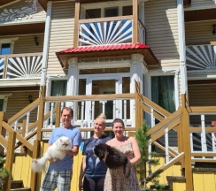 Отдыхали в январе в усадьбе Жар-Птица. Выбрали усадьбу по причине разрешения проживания с животными. А животное у нас не маленькое (см. фото). В отели пускают с весом не более 3 кг, а тут все 50. Проживали в отдельно стоящем Теремке. Прием комфортный, стоянка для машины удобная, интернет доступен. С едой проблем нет. В центре Белокурихи, в 1.5 км от усадьбы, нашли ресторан, который можно посещать с животными - New Stories.