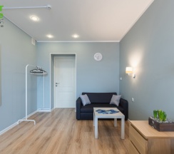 Площадь комнаты 18 кв.м. Комната дополнена стильным решением зонирования пространства на спальную и гостиную зоны. Идеально подходит для комфортного краткосрочного или длительного проживания.