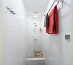 В туалете жутко неудобный кран, работает только от нажатия кнопки, а напор такой, что мокрый весь сам и полы. Руки помыть ещё более-менее, а вот умыться нормально не получается.