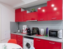 Есть общая, удобная кухня, микроволновка, холодильник, 2 душа, чисто, постельное белого цвета, чистое, без разводов и прочего. В шаговой доступности станция метро Звёздная, магазин Дикси, торговый центр Континент, аптеки и другие магазины, необходимые для всех членов вашей семьи)