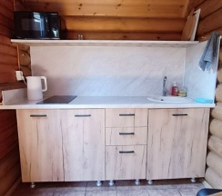 Дом из сруба сибирской сосны для небольшой семьи из 4-5 человек. Если вы живете в квартире, то пребывание в этом доме доставит вам приятные ощущения. В доме есть кухня с посудой на 6 персон, весь необходимый кухонный инвентарь, большой холодильник, обеденная зона. На первом этаже гостиная с большим двуспальным диваном, на втором этаже две односпальные кровати. На каждом этаже кондиционер.