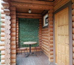 Очень живописное место. Много зелени, тихо, спокойно, чудесный воздух, пение птиц. Завтрак, который был достаточным для двоих взрослых. Номер просторный, всё в дереве. Единственный минус -это плохая звукоизоляция и скрип полов наверху, каждый шаг слышен. Есть там и банька с купелью. Территория достаточно большая. Описание отеля полностью соответствует действительности.