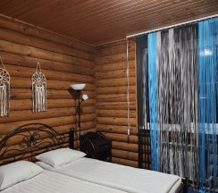 Очень живописное место. Много зелени, тихо, спокойно, чудесный воздух, пение птиц. Завтрак, который был достаточным для двоих взрослых. Номер просторный, всё в дереве. Единственный минус -это плохая звукоизоляция и скрип полов наверху, каждый шаг слышен. Есть там и банька с купелью. Территория достаточно большая. Описание отеля полностью соответствует действительности.