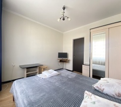 В комнате категории «Эконом» имеется: двуспальная кровать, TV, шкаф, тумба, стол, кондиционер, Wi-fi.