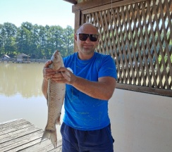 Приехал порыбачить на выходные. Озеро ухоженное, рыбы достаточно. Арендовал беседку на день, есть электричество и мангал. Персонал отзывчивый, подсказали где лучше клюет