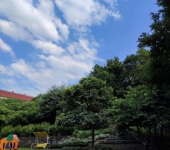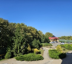 В санатории маленькая территория, гулять особо негде, но можно за 15 минут дойти до города. Сам санаторий на вершине горки, вокруг лес, тихо и спокойно.
