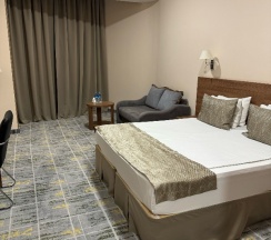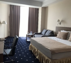 Отличный отель! 10/10. Соотношение цена/качество - супер! Я проживала в течение 12 дней в одноместном номере. Завтраки в номер - очень удобно. Причем время выбираешь сам. Не нужно утром подрываться и бежать, чтобы успеть ко времени. Уборка, замена полотенец, вода, чай/кофе - ежедневно. Удобная большая кровать. Большое окно. Проживала на 6 этажее. Вид с окна - на город, великолепный. До пляжа пешком минут 7 по прямой. Многие пишут про шум на улице,т.к. проезжая часть. Но мне шум не мешал совсем. После всех экскурсий я спала крепко. В пешей доступности от отеля магазины, кафе, самый главный рынок 2 Махачкалы. Вежливый персонал.