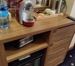 Отличная гостиница.есть кофе машина.холодильник-бар, сейф,утюг и гладильная доска.посуда и даже нитки с иголкой.👍