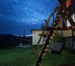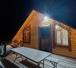 Снимали 2 этаж дома и еще домик на компанию 8 человек. Все достаточно комфортно, на кухне все есть, тепло! Вечером все украшено гирляндами, можно попариться в чане. Во дворе ухоженно, газончик, есть лежаки и качели 👍 на газоне по утрам хорошо делать йогу!