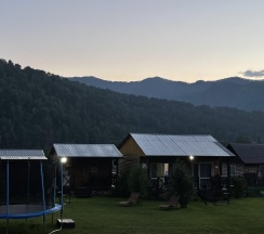 Уютные домики у подножья горы! ⛰️ Дизайн комнаты продуман до мелочей 👌 Есть микроволновка, холодильник 👍 Отличный батут 😁👍Приятные владельцы усадьбы, подскажут где лучше покупаться и позагорать неподалеку