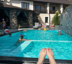 Спасибо за гостеприимство. Номер убирали каждый день. Достался номер с балконом, на балконе собирали ягоду с куста шелковицы). Завтрак очень сытный, чередовали яичницу с кашей + блинчики. Обед и ужин тоже очень вкусные. Украшали тарелку, всегда какой нибудь орех или ягода (черешня или клубника). До моря пешком минут 7-10 в зависимости от темпа. Персонал очень причетливый. Дарья и Анастасия осень хорошо справлялись. Татьяна Львовна держит всё под контролем. Бассейн выручал когда лень было ходить на море).