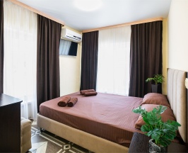 Анютины глазки — это символ уюта, комфорта и спокойного отдыха. Отель расположен в 600 метрах от черного моря. Отель с закрытой территорией, ландшафтным дизайном, и множеством зон отдыха. В отеле два открытых сезонных бассейна , возле каждого из них, плетенная мебель, мягкие гамаки, беседки и бунгало. Рядом расположены бар и кафе, в любое время вы можете насладиться фирменными блюдами и напитками. В отеле множество категорий номерного фонда , от стандартных номеров до бизнес класса.