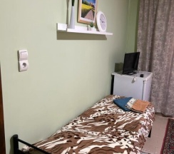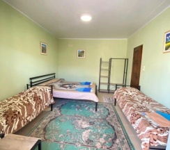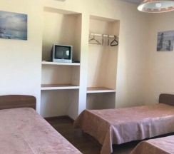 Номера светлые и просторные, площадью 15,8 кв.м. В каждом номере есть сан.узел , площадью 3,4 кв.м.(раковина, унитаз и душ),горячая и холодная вода 24 часа в сутки. Каждый номер имеет «личную» территорию со столом и стульями. Оснащение номеров: 2-х спальная кровать и две односпальные, прикроватные тумбочки, шифоньер, телевизор, холодильник и кондиционер.