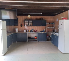 Можно отдельно заказывать у хозяев питание, либо готовить на летней кухне. Мы отдыхали в июне, не все номера были заселены, поэтому на кухне было свободно, готовили сами. Так же всегда были свободные парковочные места на территории.