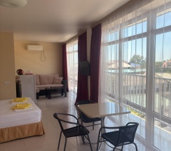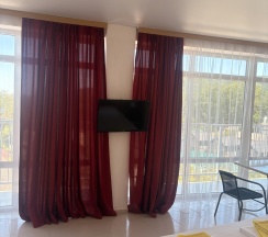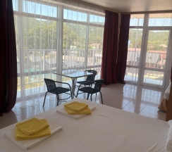 Все комнате объединены общим балконом, с которого гости заходят в комнату. Из окна комнаты открывается прекрасный вид в сторону гор Кавказского хребта или в сторону моря.