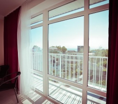 Трехместная комната с панорамными окнами - это "флагманская" комната гостевого дома Марсель. Идеально подходит для тех, кто любит потрясающие виды из своей комнаты. Комнаты расположены в передней части отеля, из окон открывается великолепный вид в сторону гор Кавказского хребта или в сторону моря.