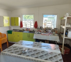 Есть своя кухня на территории. Вся посуда и сковородки /кастрюли в наличии.