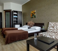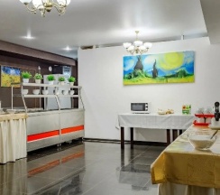 Светлый уютный номер с кондиционером. В номере холодильник, телевизор, фен. Полотенца для душа и бассейна. Уборка номера осуществляется каждый день. Два бассейна с подогревом. Есть услуга прачечной, и место где сушить бельё. На каждом этаже есть гладильные доски и кулер с питьевой водой. На территории гостиницы есть зоны отдыха,качели, шезлонги,столики под навесом. Работает аниматор как для детей так и для взрослых. Порадовала аквааэробика. Питание по системе шведский стол. Всё очень вкусно, но надо успеть. Всё отдыхающие очень голодные и накладывают себе большие порции. Один минус вода в чайнике была холодной, наливали из кулера, а так с утра хочется выпить горячий кофе.